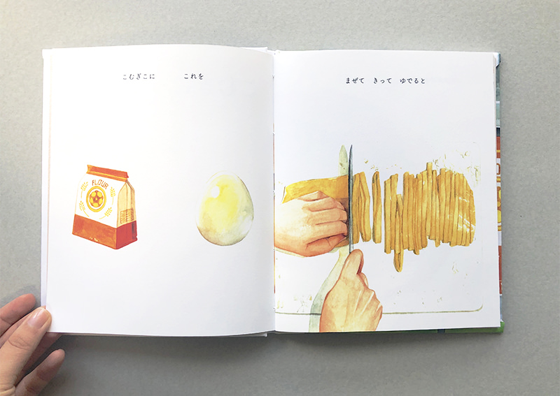 料理は材料の組み合わせや調理によって様々な形に変化します。小麦粉はその中でも塩気のある料理からお菓子まで幅広い作り方がある魅力的な食材です。その魅力を絵本を通して伝えたいと思いこの絵本を制作しました。
