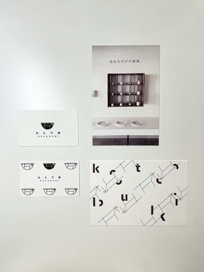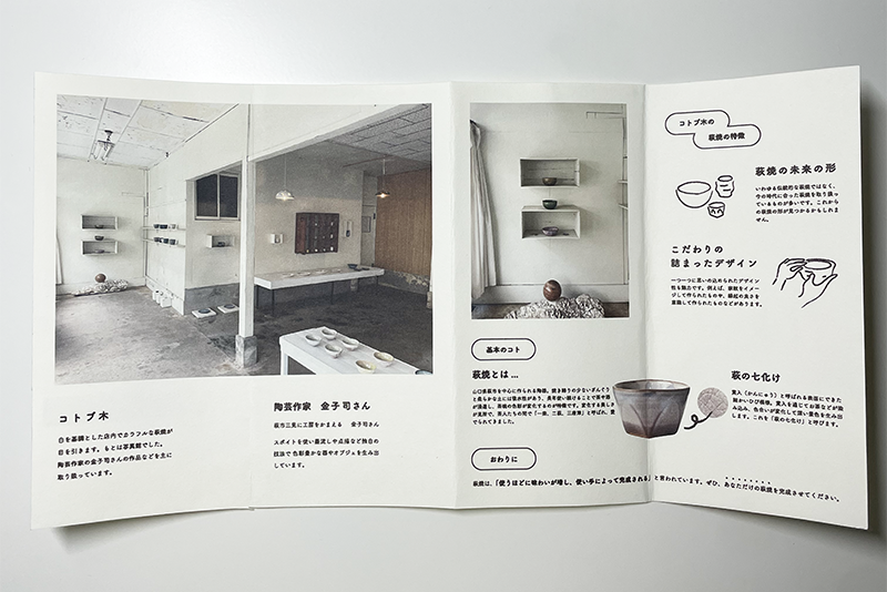 お店の雰囲気や萩焼の色合いを際立たせるために白を基調とし、全体的に落ち着いた雰囲気に仕上げました。