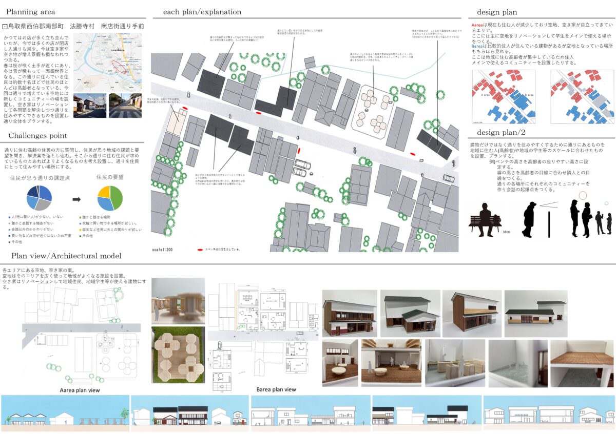 地域衰退の原因となっている住民の高齢化と活気の減少を観光客や地域の子供たちと直接的なつながりを作るコミュニティーの場を設置したり、元々住む地域の人たちの目線で必要な場をつくることで地域住民にとっての「活気ある新しい暮らし」を提案。