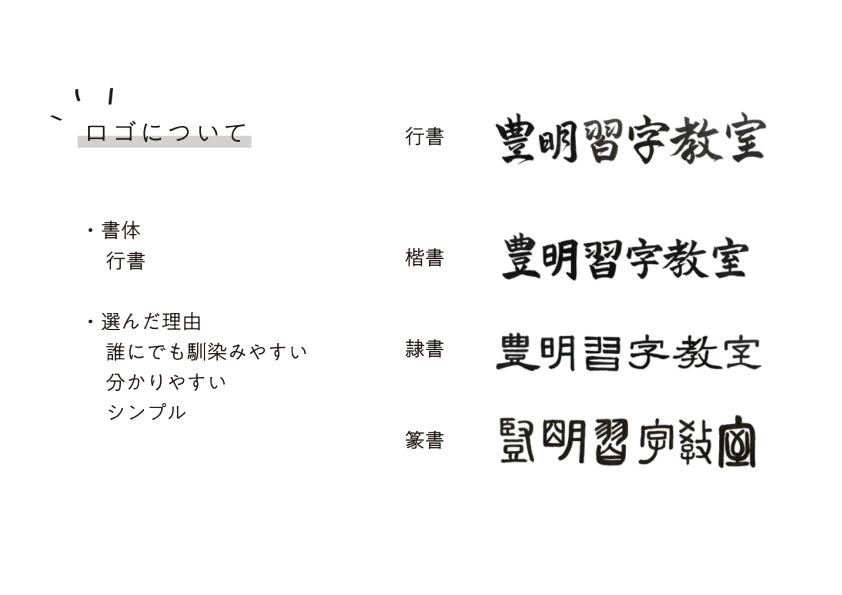 ロゴは習字教室の先生に様々な書体で教室名を書いてもらい、誰にでも馴染みやすく、分かりやすいシンプルなロゴにしました。
