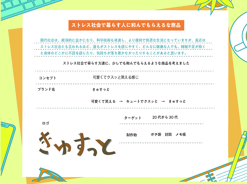 クスッと笑えるような紙雑貨「きゅすっと」のブランディング