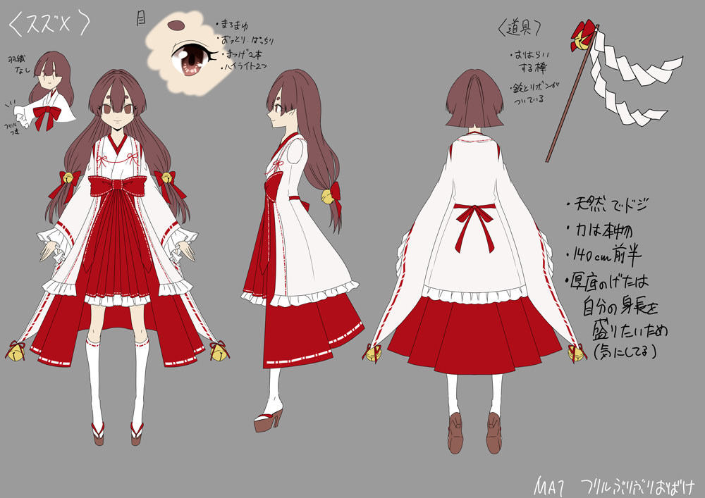 また、巫女の設定ということで、元来のロングも、少女らしいミニスカートもどっちもいいなと思ったので両方使いました。
