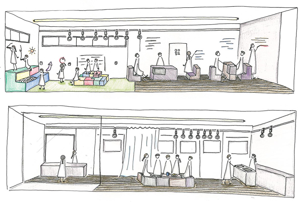 停留所をイメージしているので、吊り革をモチーフにしたものを作り、上の空間にも利用できる幅を持たせました。