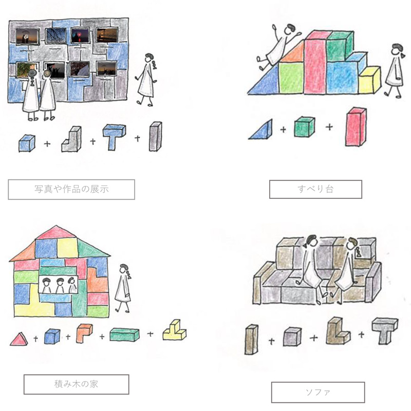 正方形だけではなく、さまざまな形を作ることで、組み合わせも楽しめるようにしました。