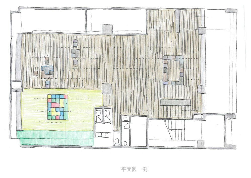 自由なだけではなく、使いやすい工夫として、大人が使うスペースとこどもが使うスペースを色分けをしてみました。