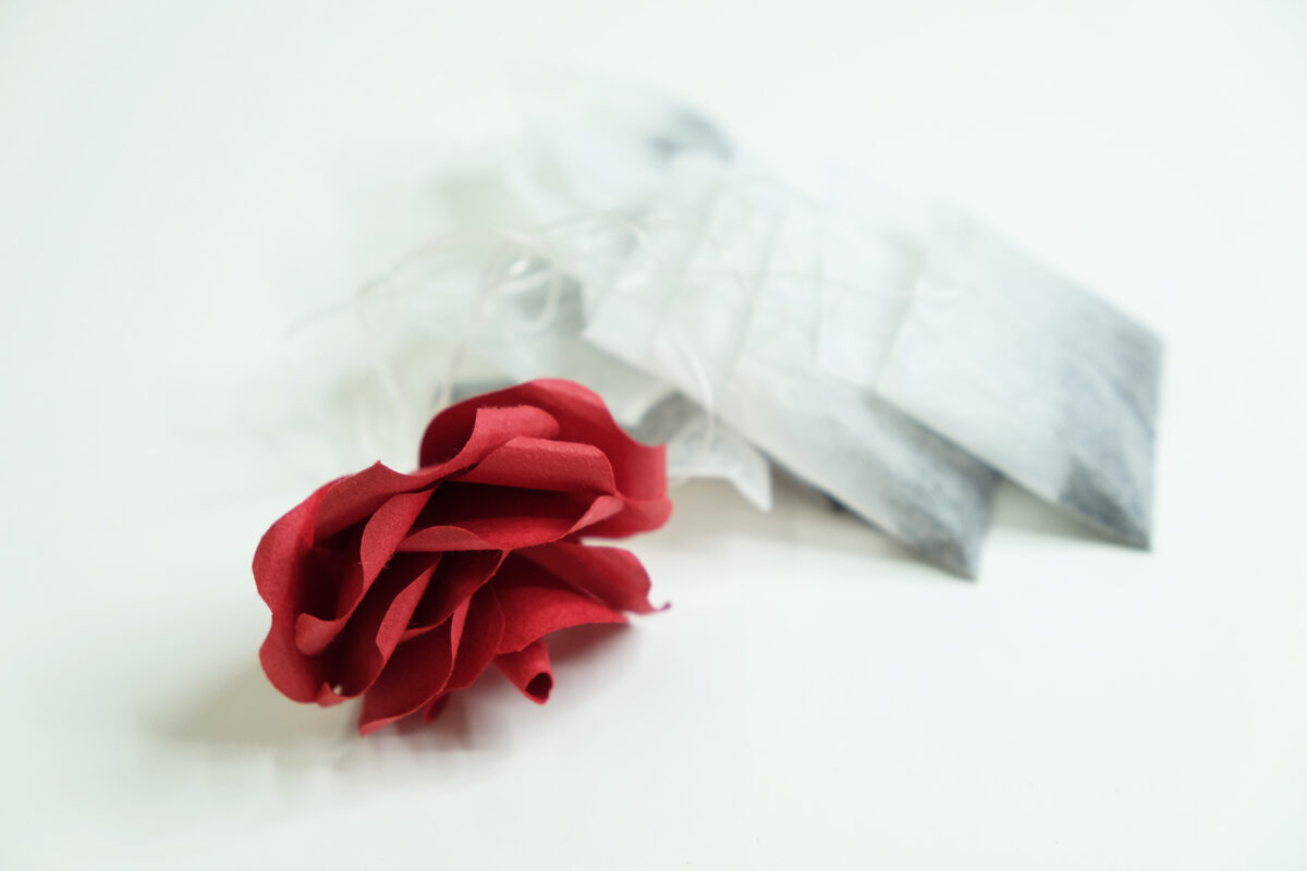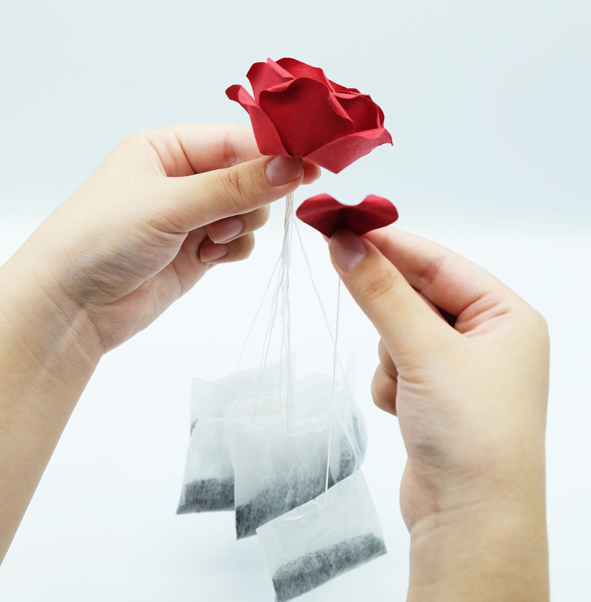 バラの花びら一枚一枚がティーパックと繋がっており、