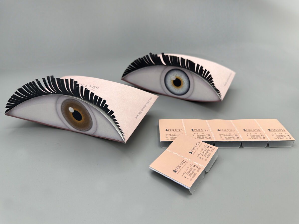 目をテーマにしたカラーコンタクトレンズのパッケージ
