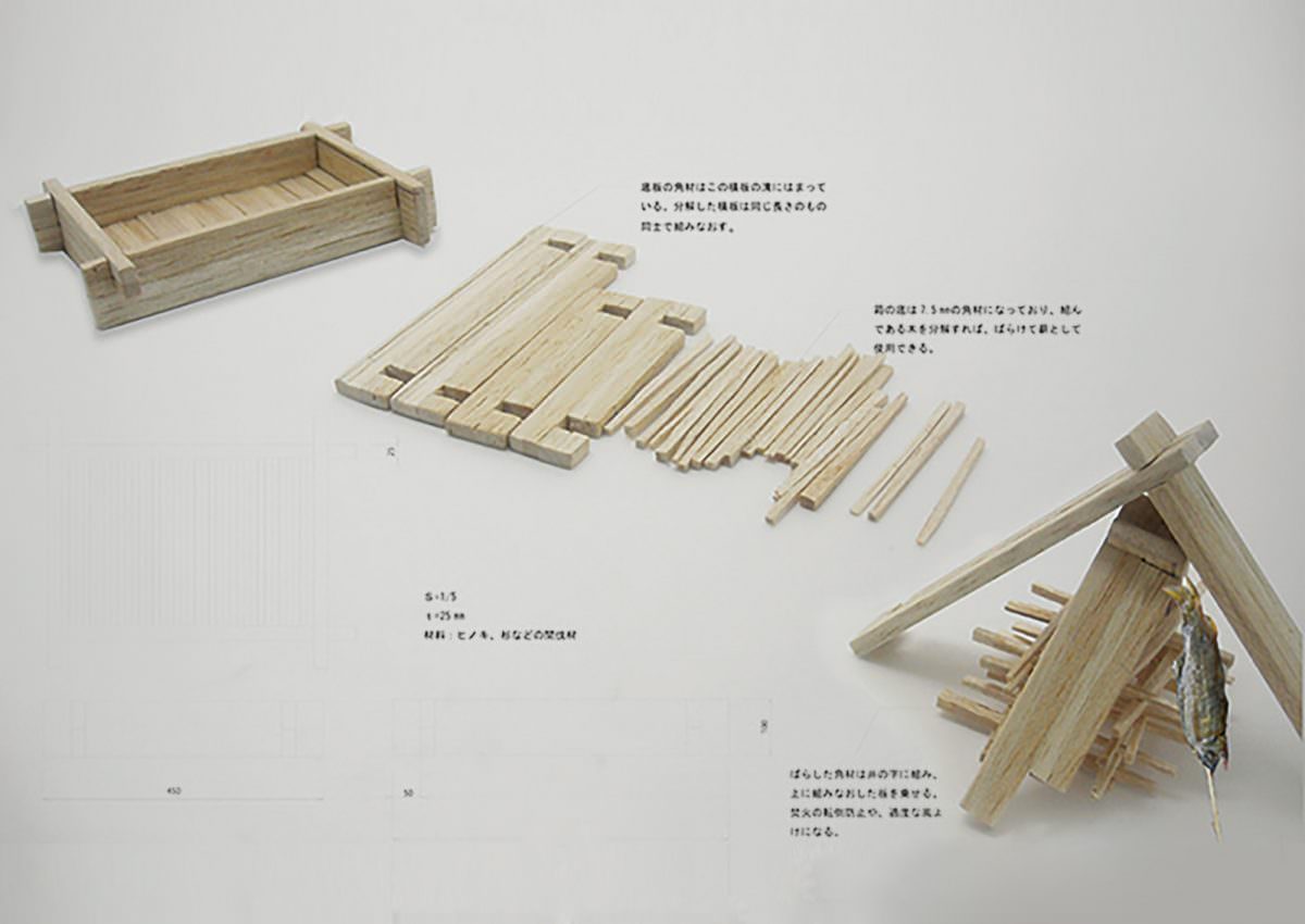 高津川の鮎を贈るためのギフトボックスの提案です。箱は簡単に分離できて鮎を焼くための薪になります。
