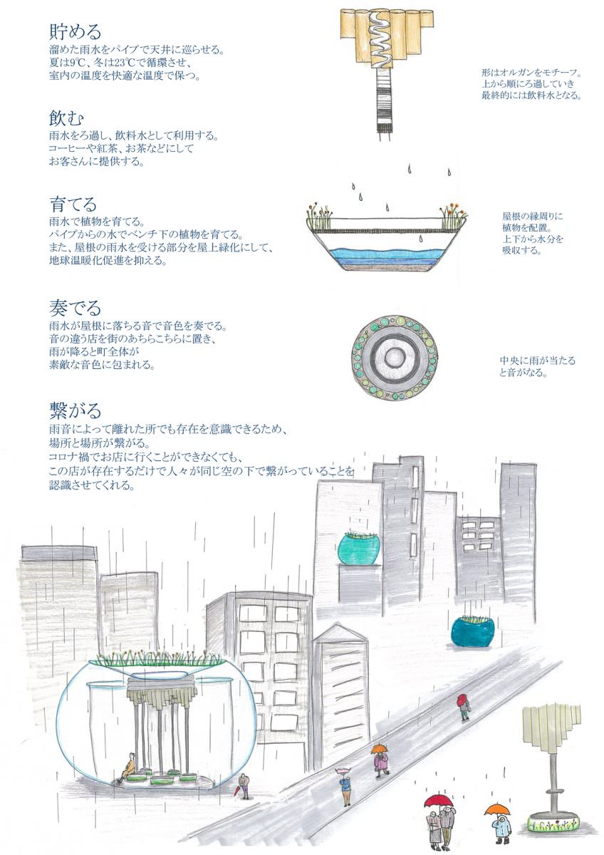 雨を目で見て、耳で聴いて、舌で感じて色んなことに利用し、 雨の日を楽しむことができるお店。