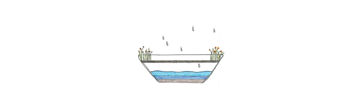 屋根の緑周りに植物を配置。上下から水分を吸収する。