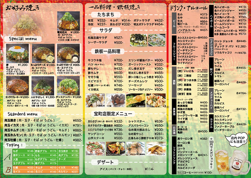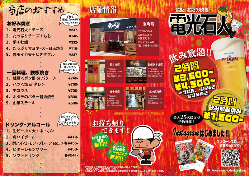 バイト先(鉄板・お好み焼き電光石火)の新メニュー表
