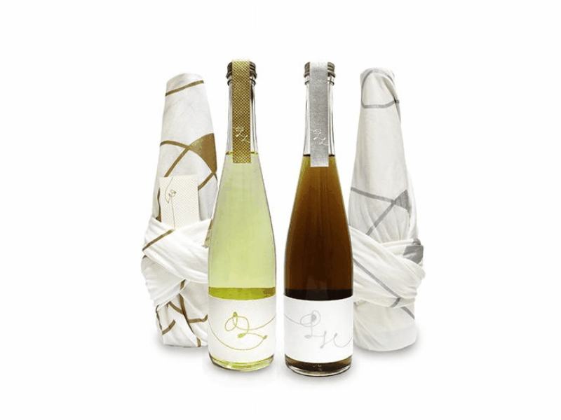 榎酒造の貴醸酒「華鳩」贈答酒二種のアートディレクション