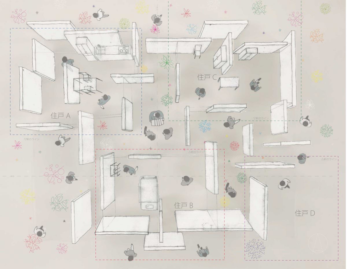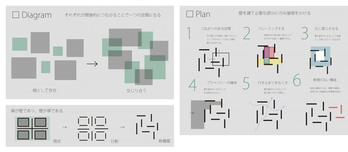 壁や塀など、家を構成するものに、そのもの以外の役割を持たせることで空間が広がり、重なり、つながっていく、新しい価値観を持った住宅です。