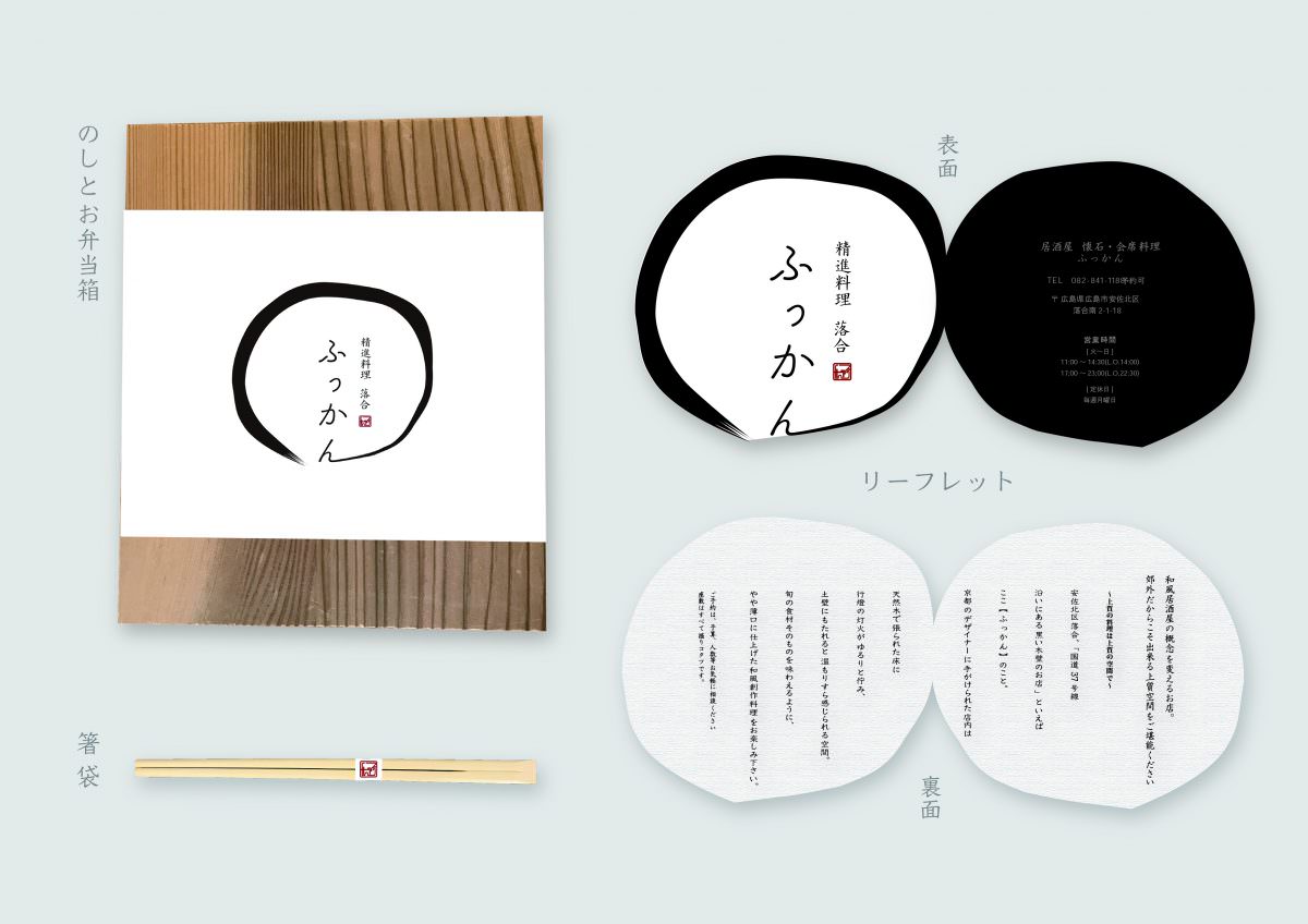ふっかん - 和食風居酒屋のテイクアウトツール - ロゴマーク、シンボルマーク、箸袋、弁当箱に被せるのし、リーフレット