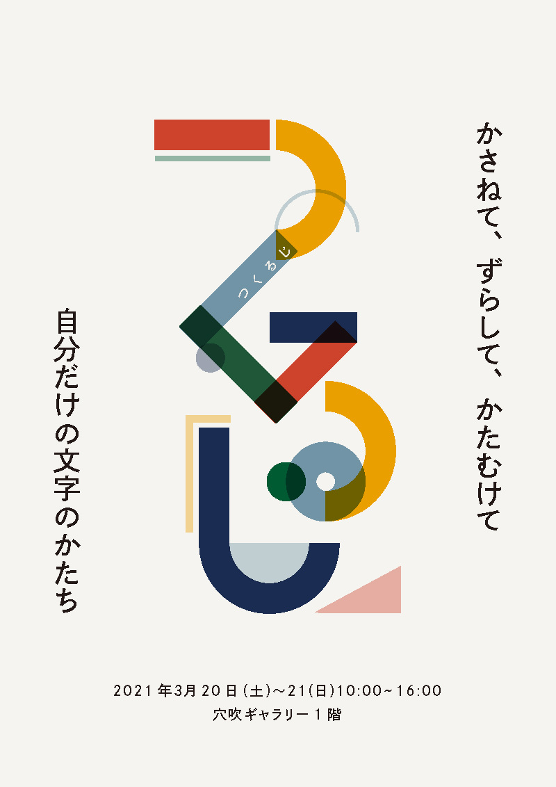 様々なかたちが描かれているカードを組み合わせて新しい形の文字をつくるワークショップ型の体験タイポグラフィ。